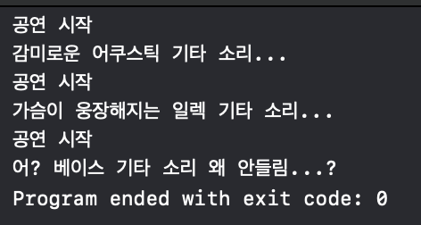 그리고 프로토콜을 따르게 되는 기타 안 메서드에서 어떠한 변화가 일어난다고 한들 기타리스트는 그저 그 기타를 연주할 뿐이기에 영향을 받지 않게 됩니다. 이는 코드의 유연성을 향상시킨다고 볼 수 있습니다.