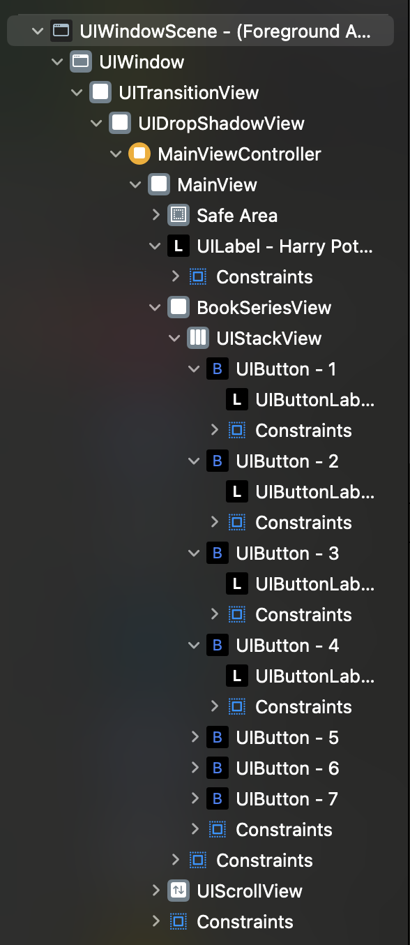 이후에 스택뷰 내에 버튼 인스턴스 생성 시 size에 대한 명확한 조건을 주어 오히려 상위 뷰의 제약조건이 하위 뷰를 따라가도록 설정.