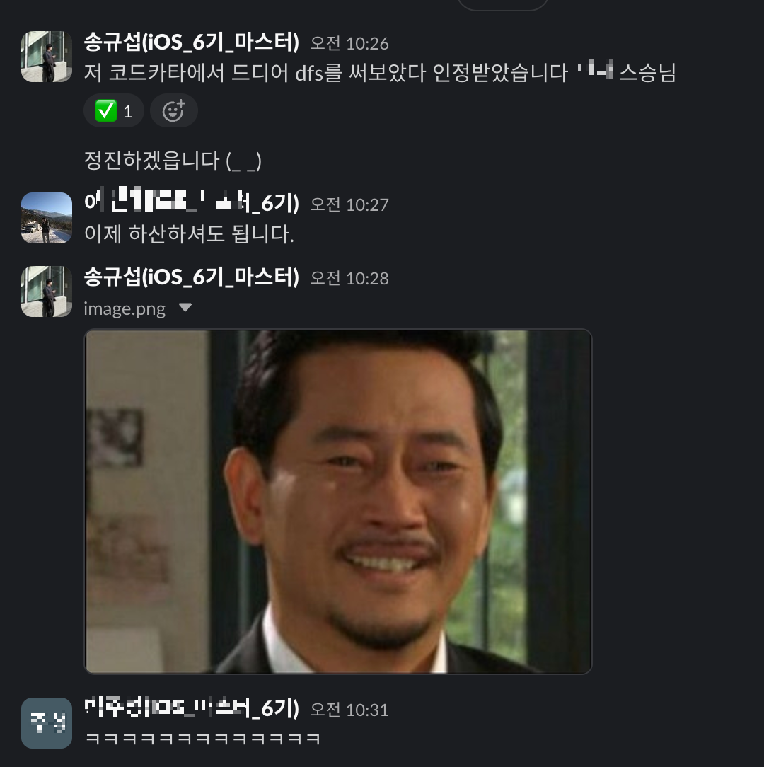 search 두번째 파라미터에 dungeons를 넣어줬던게 문제였다. 새롭게 꺼낼 부분에 대해선 업데이트 되어야 했던 내용인데 다른 로직에 정신이 없어서 이런 디테일에 신경을 쓰지 못했다. 그나저나 이전에 dfs하면 전혀 엄두도 못냈는데, 이번엔 난이도가 좀 낮긴 해도 재귀함수를 스스로 써볼 수 있는 기회가 되어 좋았다.