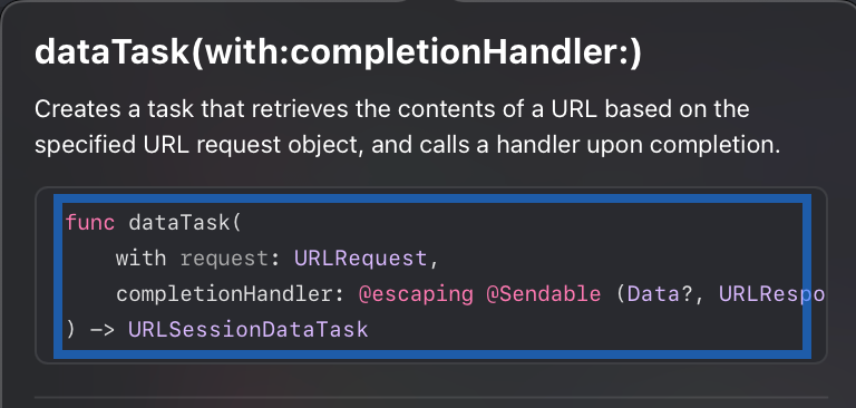 이 URLSession을 통해서 어떻게 앱과 데이터를 주고받는지에 대한 방식은 일단 두가지. 비교적 전에 쓰던 Completion Handler 패턴, 그리고 이보다 최근에 나온 Swift Concurrency를 이용한 방식이 있는데... 일단 이것들을 다루기 전에 이 안에선 어떻게 해야 URLSession을 가지고 데이터들을 불러올 수 있을지에 대해 알아보도록 하겠읍니다.