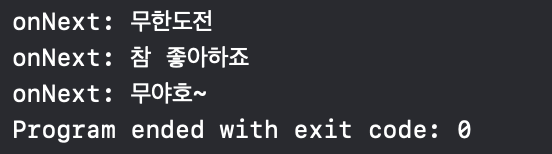 let observable = Observable.of("무한도전", "참 좋아하죠", "무야호~")