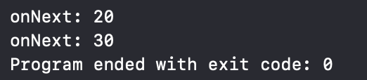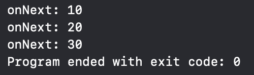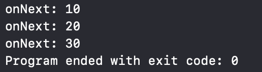 구독 시에 초깃값으로 10 받고 그 뒤에 20, 30 방출해 onNext 처리해줌