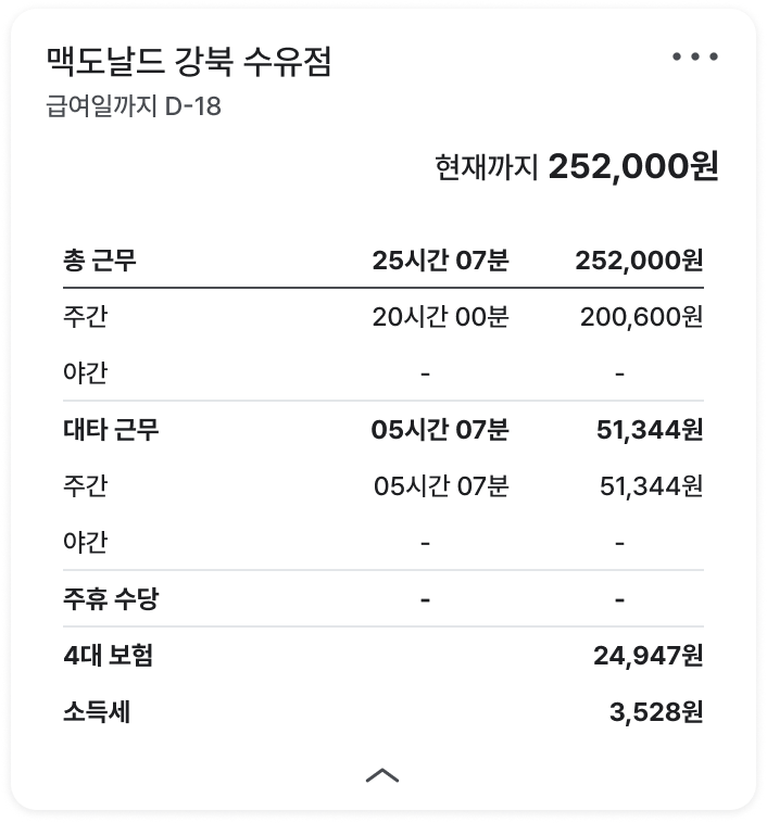 기존 홈 내 알바생이 본인의 근무지를 볼 수 있었고 셀을 탭하면 확장 및 축소가 되어 급여에 대한 상세한 요소들을 볼 수 있어야 했음